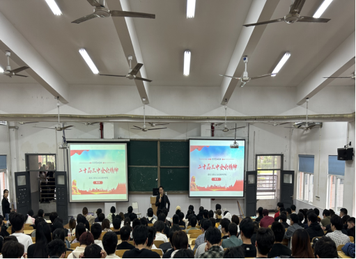 党的二十届三中全会是在以中国式现代化全面推进强国建设、民族复兴伟业的关键时期召开的一次十分重要的会议。全会通过的《中共中央关于进一步全面深化改革、推进中国式现代化的决定》,明确了进一步全面深化改革的指导思想、总目标、重大原则,重点部署了未来五年的重大改革举措,是指导新征程上进一步全面深化改革的纲领性文件。为引导广大学生将思想和行动统一到全会精神上来,药学院近期开展“学习贯彻党的二十届三中全会精神”系列宣讲活动,引导广大学生锚定目标向前进、勤奋学习长本领、团结奋斗建新功,更加主动为中国式现代化挺膺担当。